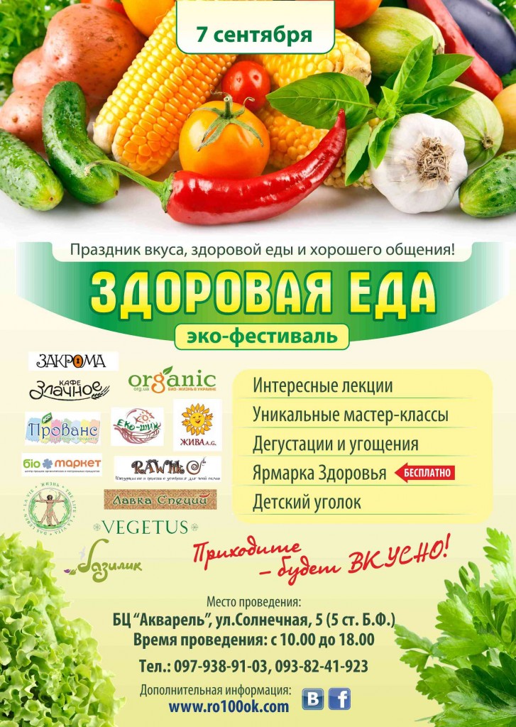 Эко-фестиваль “Здоровая Еда” 7 сентября в Одессе в БЦ Акварель на ул. Солнечная 5 ( 5 фонт.)